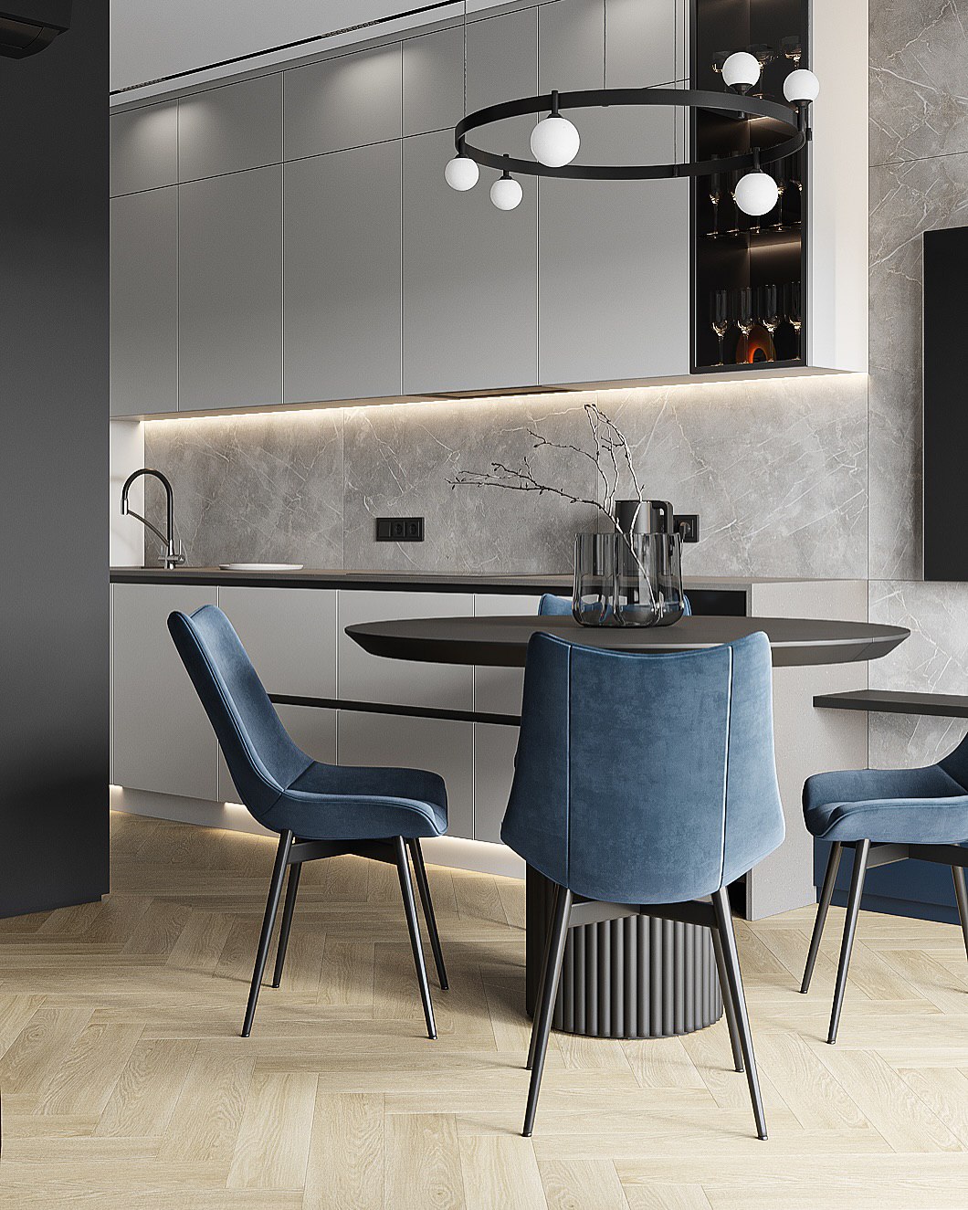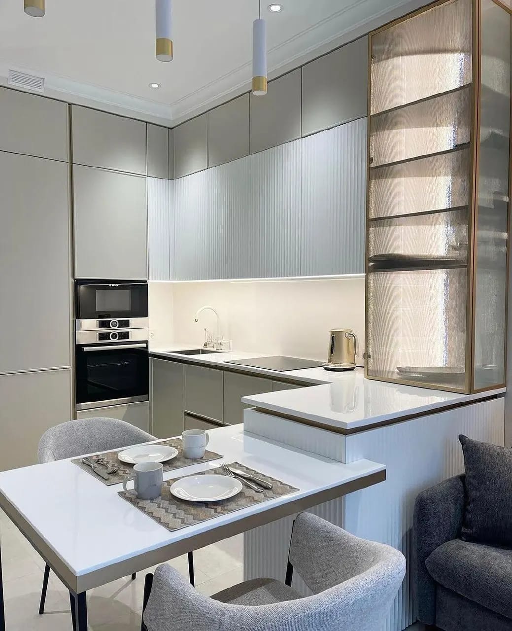 • Угловые и островные планировки.