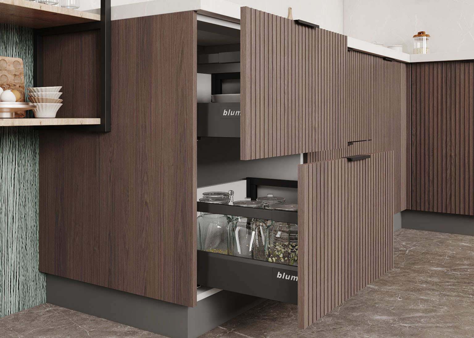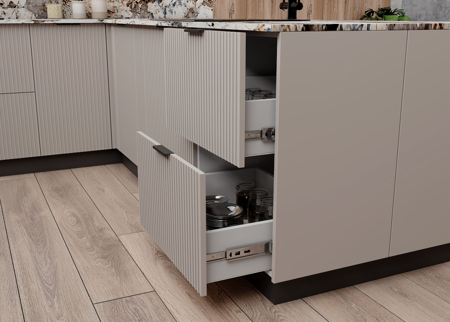 • Фасады со стеклом выполнены с прозрачным 4 мм стеклом, добавляя лёгкости дизайну.