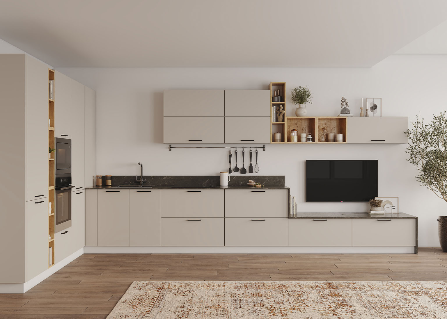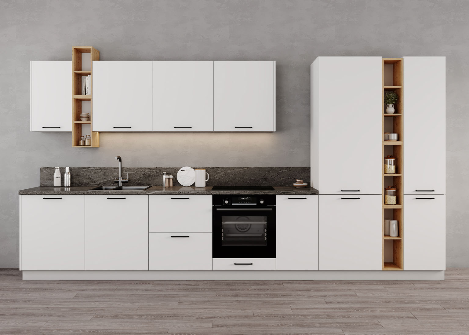 Модульная кухня «Фортуна» легко адаптируется под ваши нужды и размеры помещения. Фасады из МДФ, облицованные прочной плёнкой, обеспечивают износостойкость, защиту от царапин и влаги, сохраняя идеальный внешний вид даже при активном использовании.