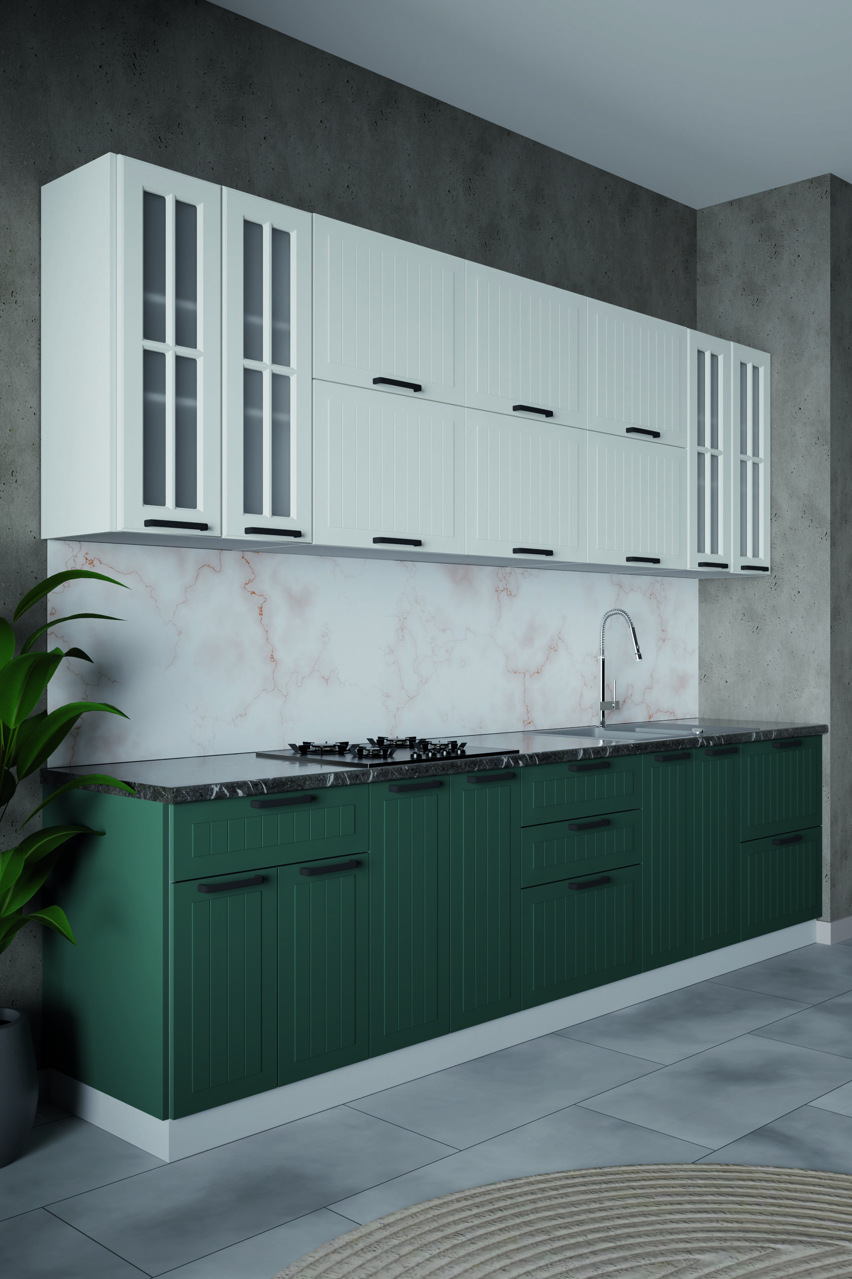 Ритмичные линии придают фасадам динамику и глубину, визуально вытягивая их вверх и делая пространство легче и объёмнее. Аккуратная рамка подчёркивает геометрию, придавая дизайну завершённость и гармонию.