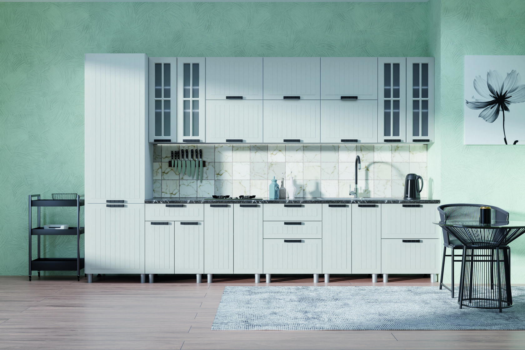 Модульная кухня «Орхидея» — это коллекция с характером и настроением, в которой сочетаются уют и изящество. Её отличает уникальная фрезеровка: вертикальные линии, вписанные в аккуратную рамку, создают образ тёплой и гостеприимной кухни в стиле прованс с лёгким французским шармом.