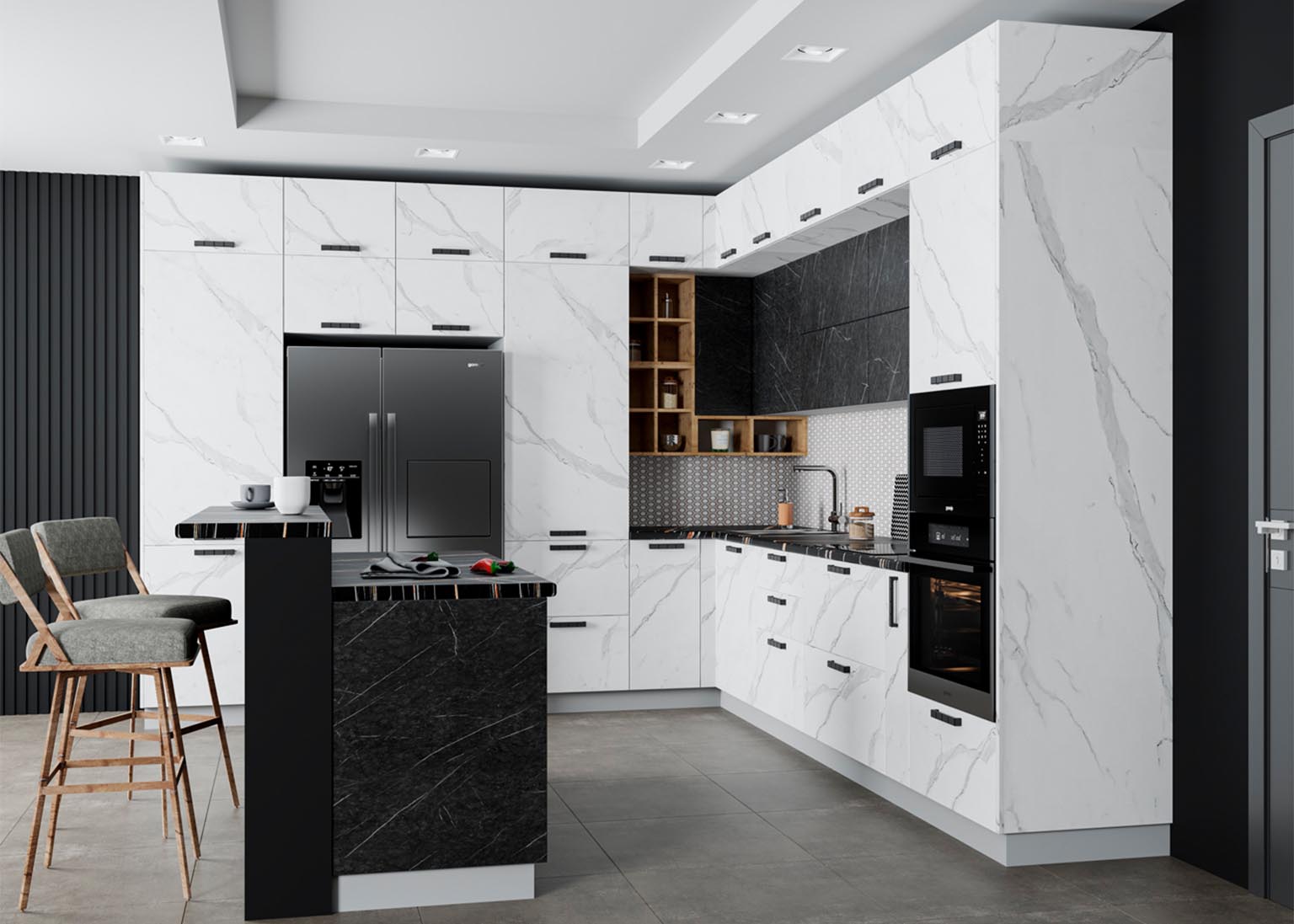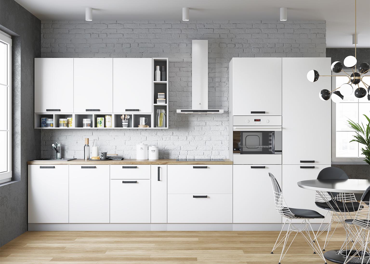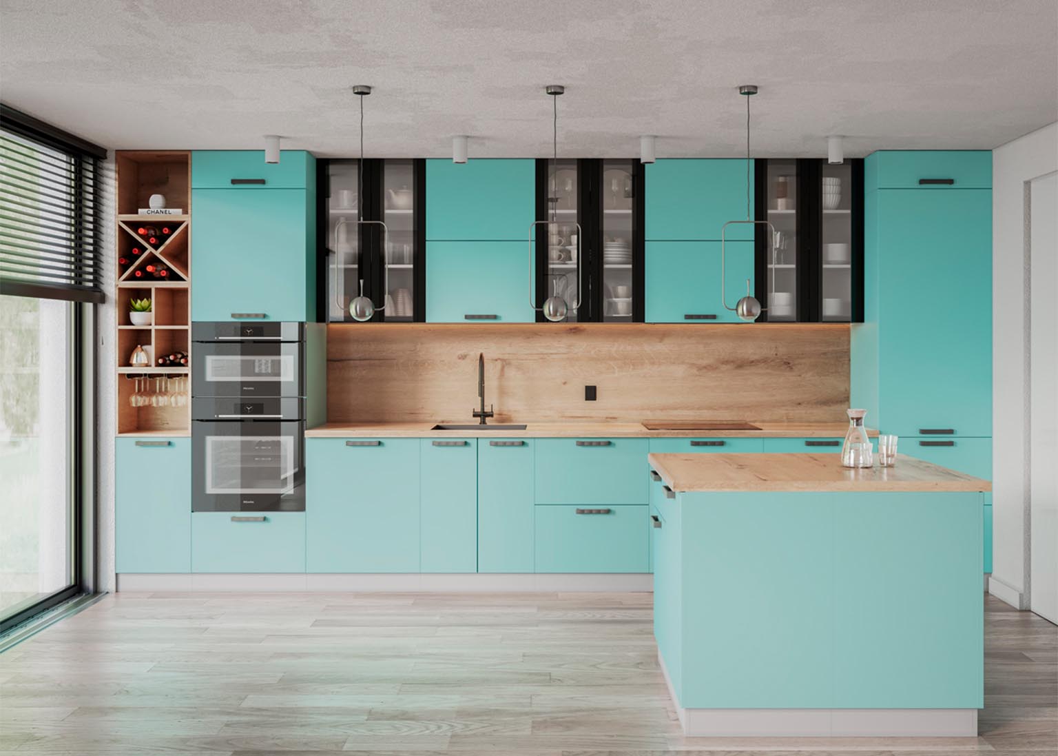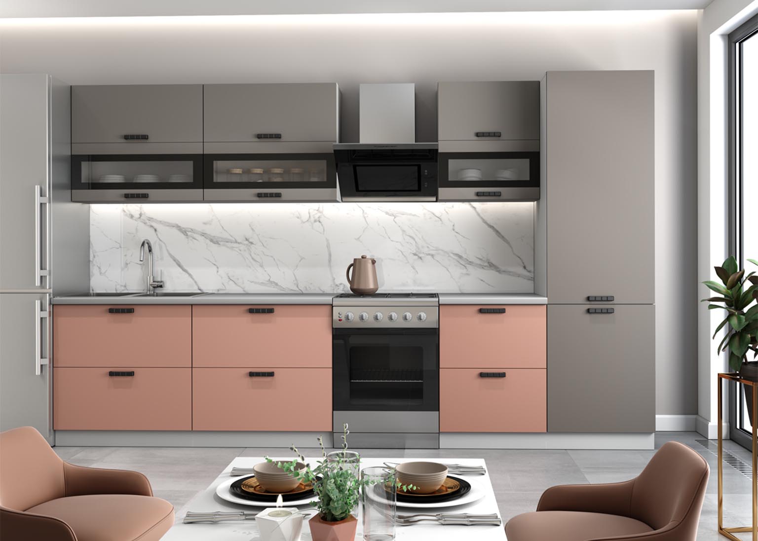 Цветовая палитра подчёркивает стиль и атмосферу кухни. Оттенки белого софта, зелёного софта, грей софта и другие холодные тона создают ощущение простора и лёгкости. Лаконичные фасады можно доукомплектовать любыми ручками, добавляя в интерьер яркие акценты.