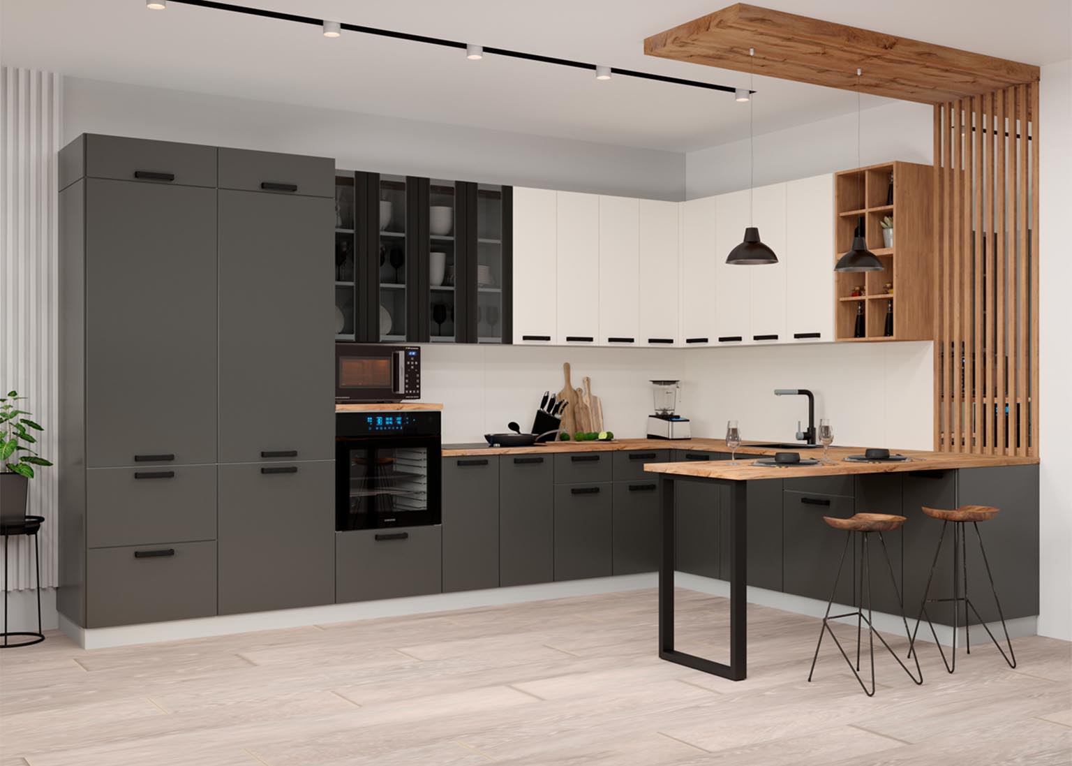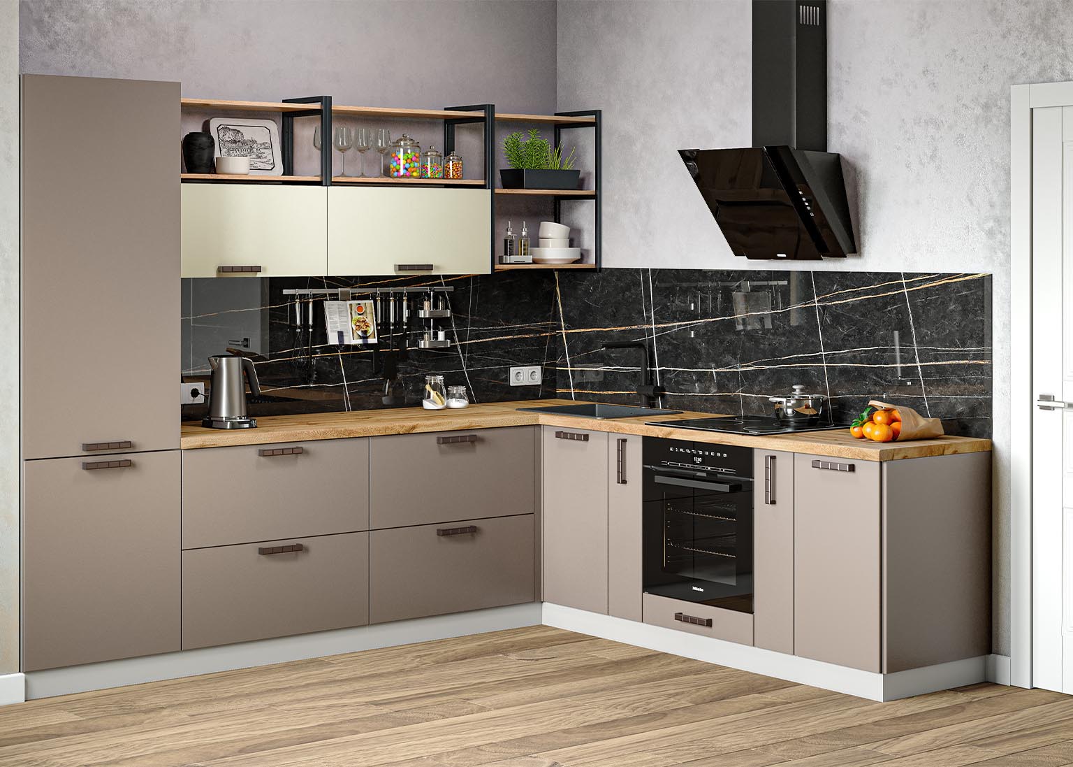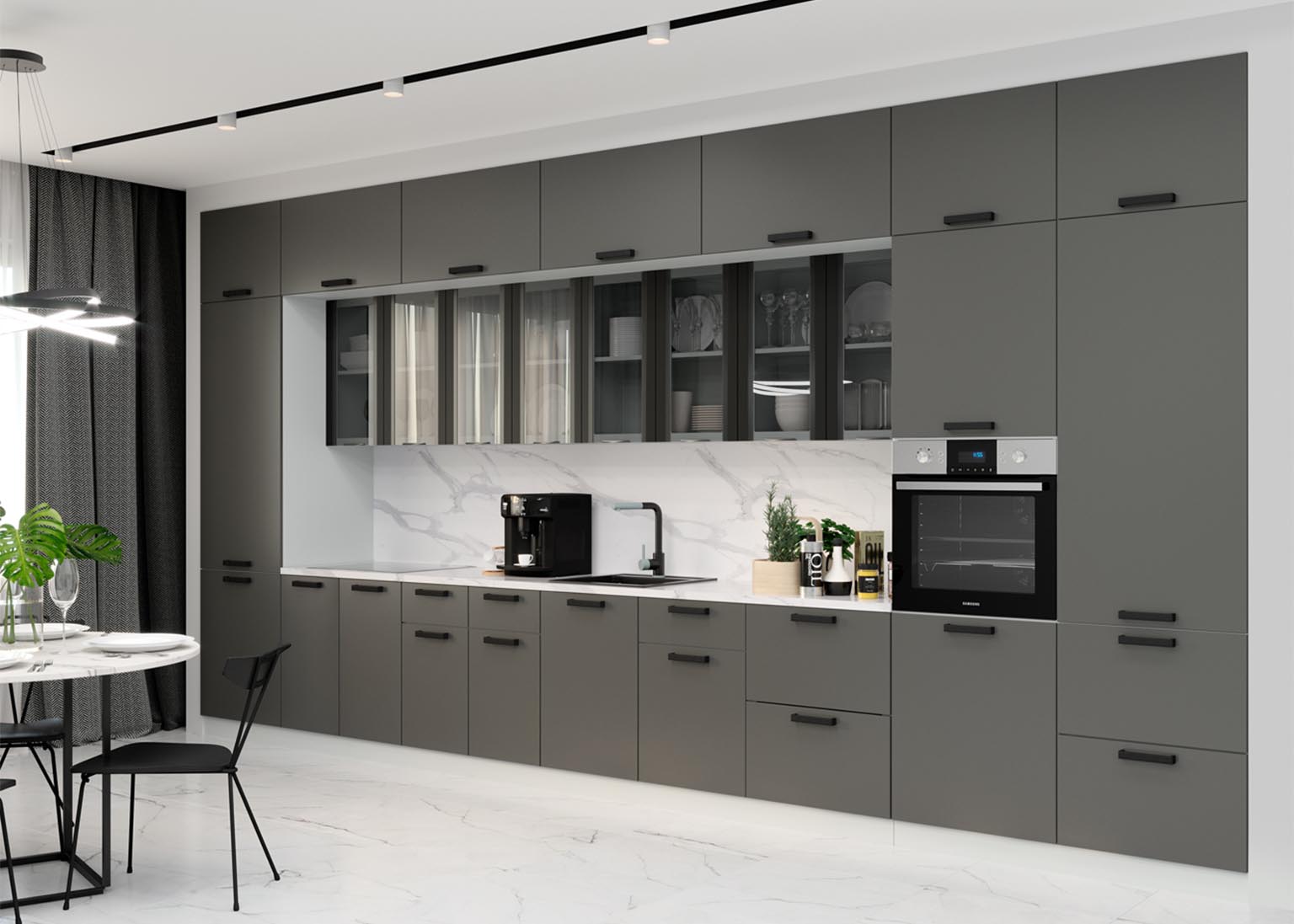 Кухня «Ройс» не только эффектно выглядит, но и обладает высокой функциональностью. Модульная конструкция делает рабочую зону удобной и адаптивной к любым задачам. Матовые поверхности приятны на ощупь и легко очищаются, упрощая уход.