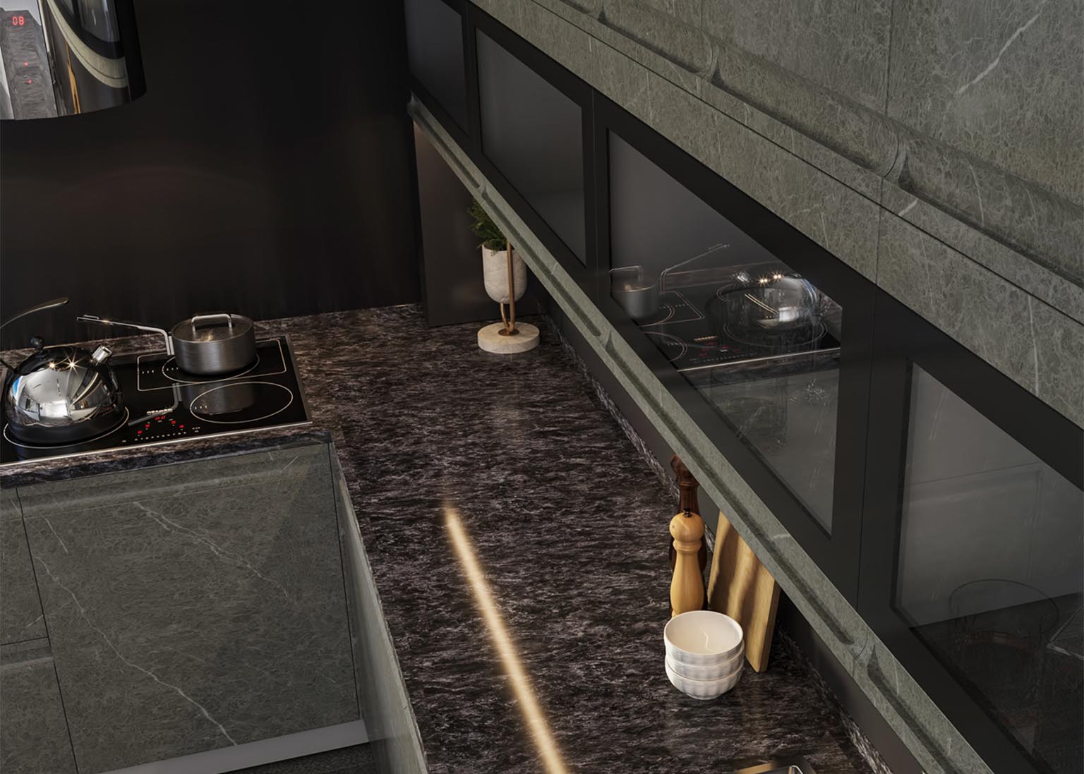 Выразительные фасады с «скалистым» рисунком станут визуальным центром интерьера. Кухня «Скала» — это не просто мебель, а произведение искусства, созданное с вниманием к деталям.