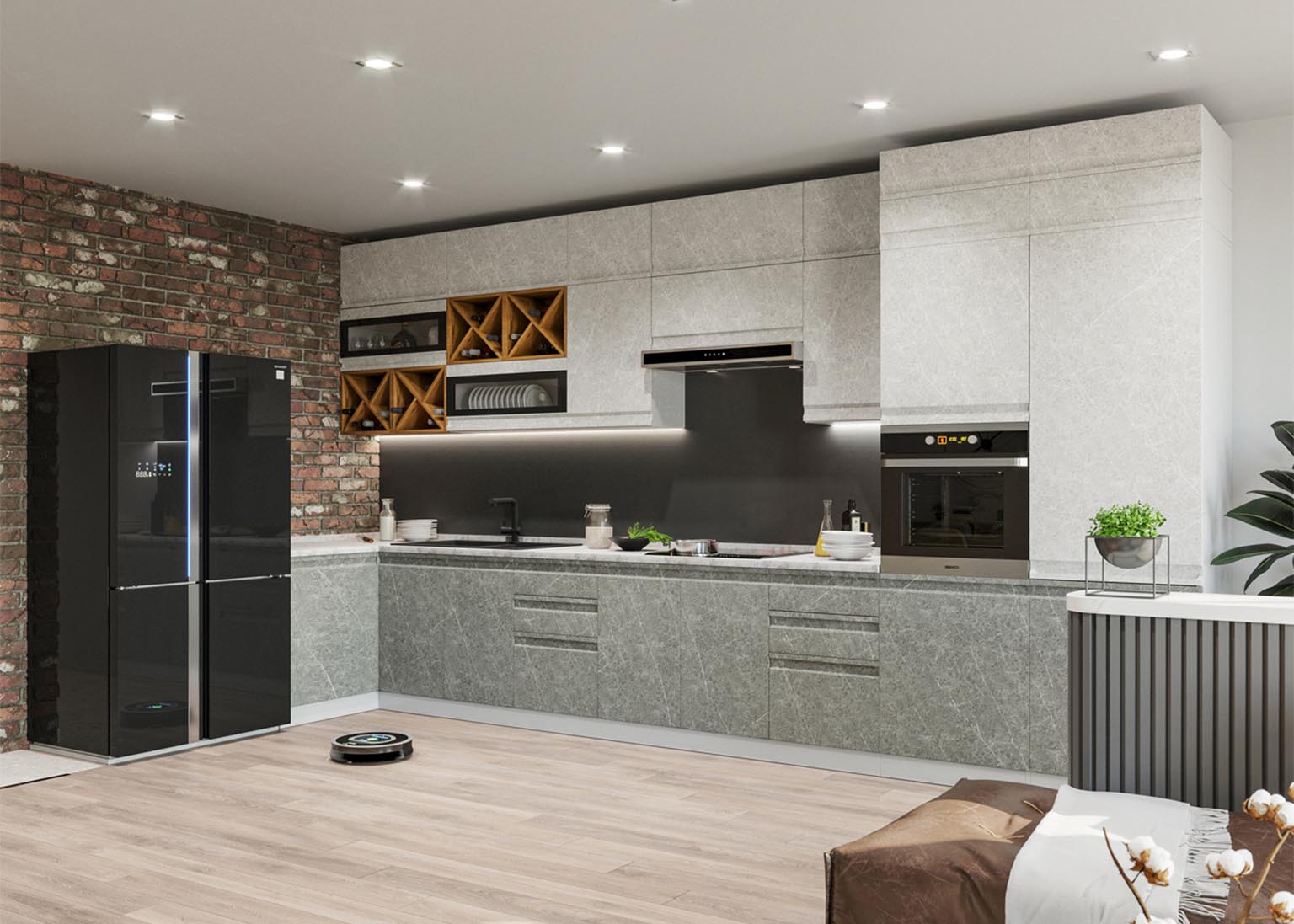Каждая деталь кухни «Скала» проработана с безупречной точностью. Гарнитур объединяет практичность и современный внешний вид: минимум лишних элементов, отсутствие ручек и продуманная эргономика.